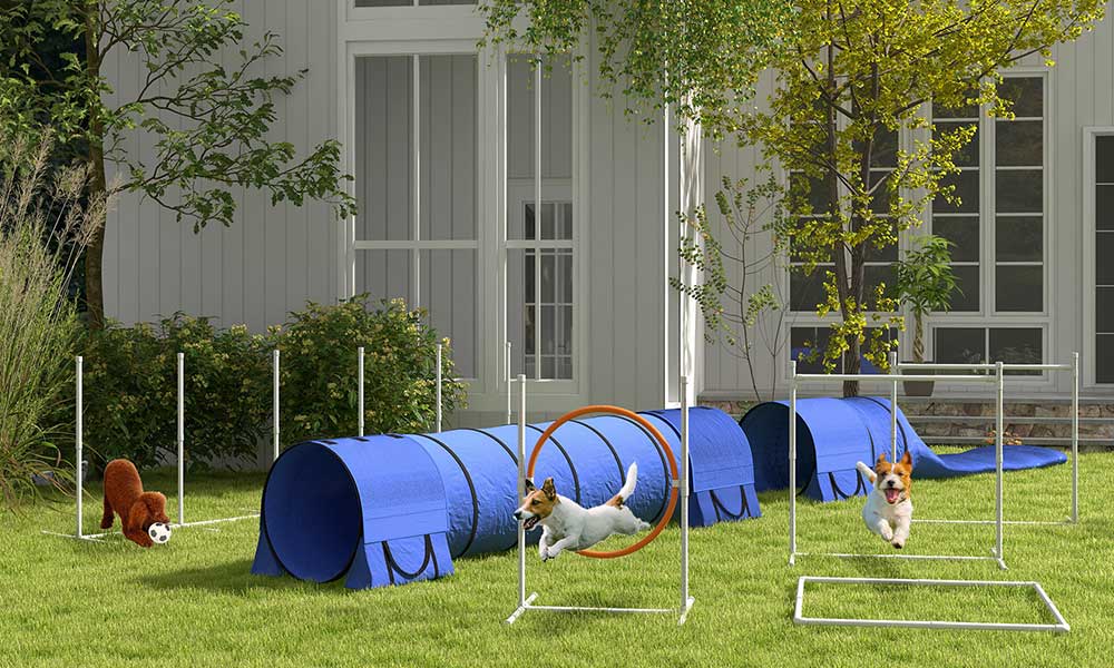 علاوه بر موانع ساده، میتوانید از حلقه، تونل یا نردبان استفاده کنید تا سگ چابکی بیشتری پیدا کند.