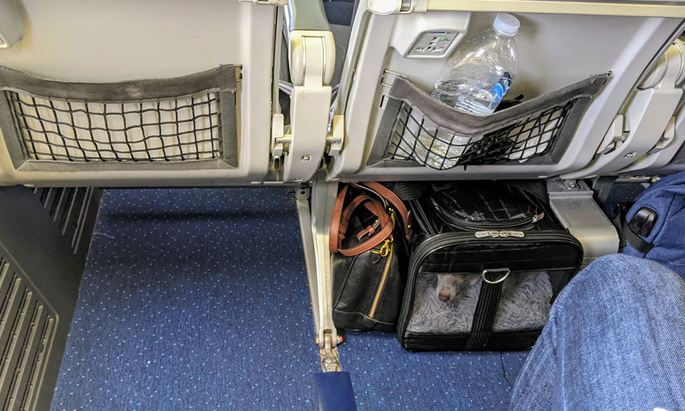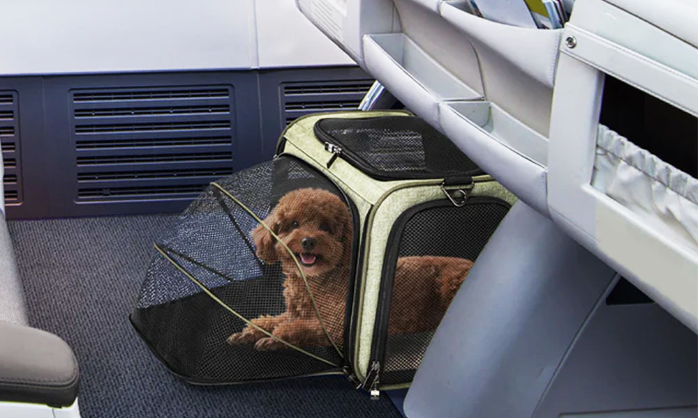 باکس باید زیر صندلی قرار گیرد و سگ باید در طول پرواز داخل آن بماند.