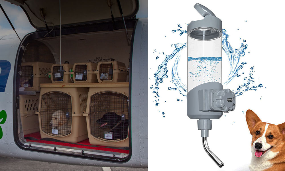 در پروازهای طولانی، باید بطری آب مخصوص حیوانات (Anti-spill) و کمی غذای خشک همراه داشته باشید.