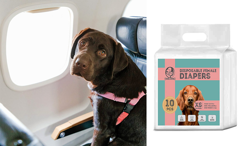 اگر پرواز بیش از ۳ ساعت طول میکشد، حتماً از پوشک مخصوص سگها استفاده کنید تا محیط داخل باکس تمیز بماند.