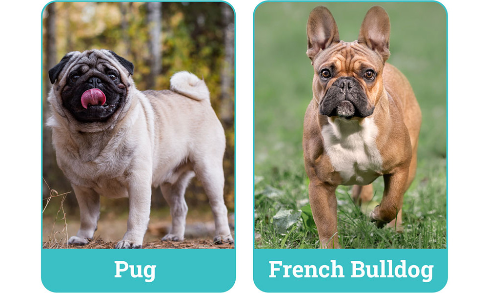 پاگ (Pug): از نظر صورت شباهت زیادی دارد، اما دم پاگ حلقهای است و گوشهایش افتادهاند. فرنچ بولداگ گوشهای ایستاده و بدن عضلانیتری دارد.
