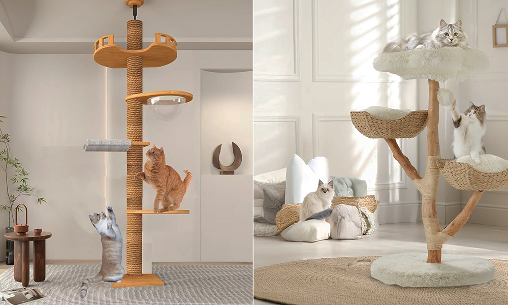 - گربهها معمولاً به مکانهای مرتفع و پناهگاههای امن نیاز دارند. باید فضاهایی مانند درخت گربه یا قفسهای مخصوص گربه برای آنها فراهم کنید تا بتوانند در مواقع استرس به آنجا پناه ببرند.
