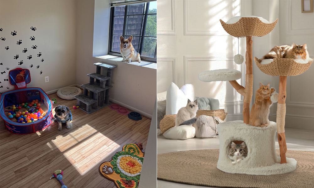 همانطور که قبلاً اشاره شد، برای گربهها باید فضای امن و برای سگها فضای بازی و فعالیت فراهم کنید. این کار به هر دو حیوان کمک میکند که احساس امنیت کنند.