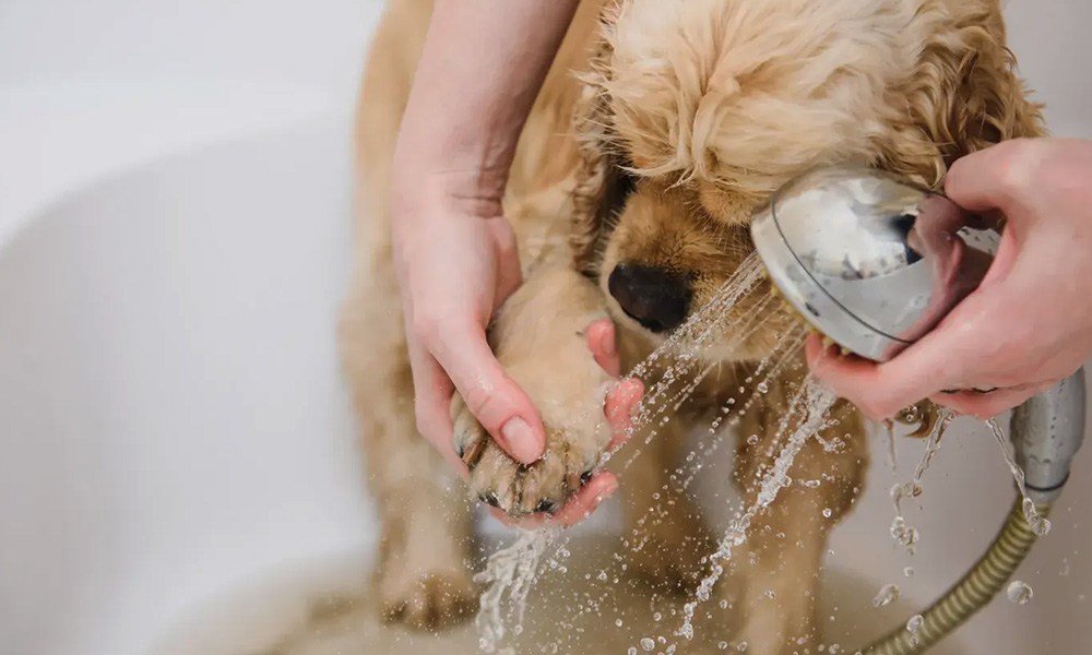- سگ را با شامپو مخصوص حیوانات شستشو دهید (نه خیلی زیاد، فقط در صورت نیاز).
