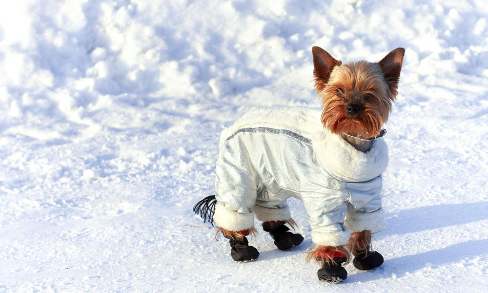 از کفشهای مخصوص سگ برای روزهای برفی بهره ببرید.