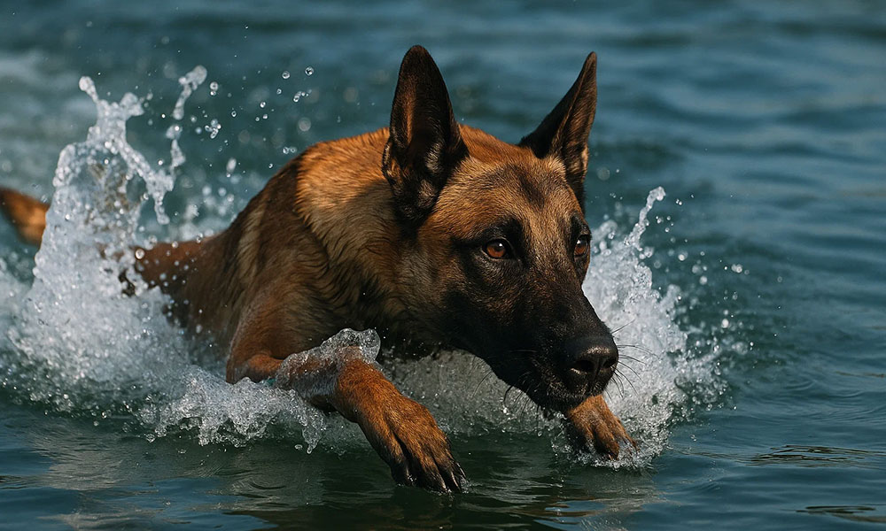 - ژرمن شپرد: با تمرین مناسب میتواند شناگر ماهری شود.